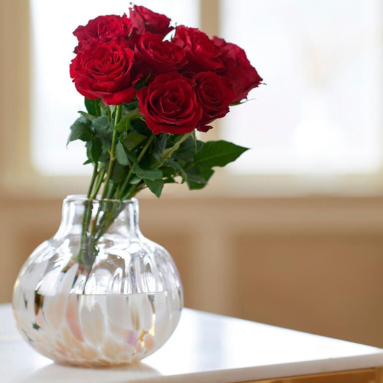 Jubileumsvasen Lykke med røde roser